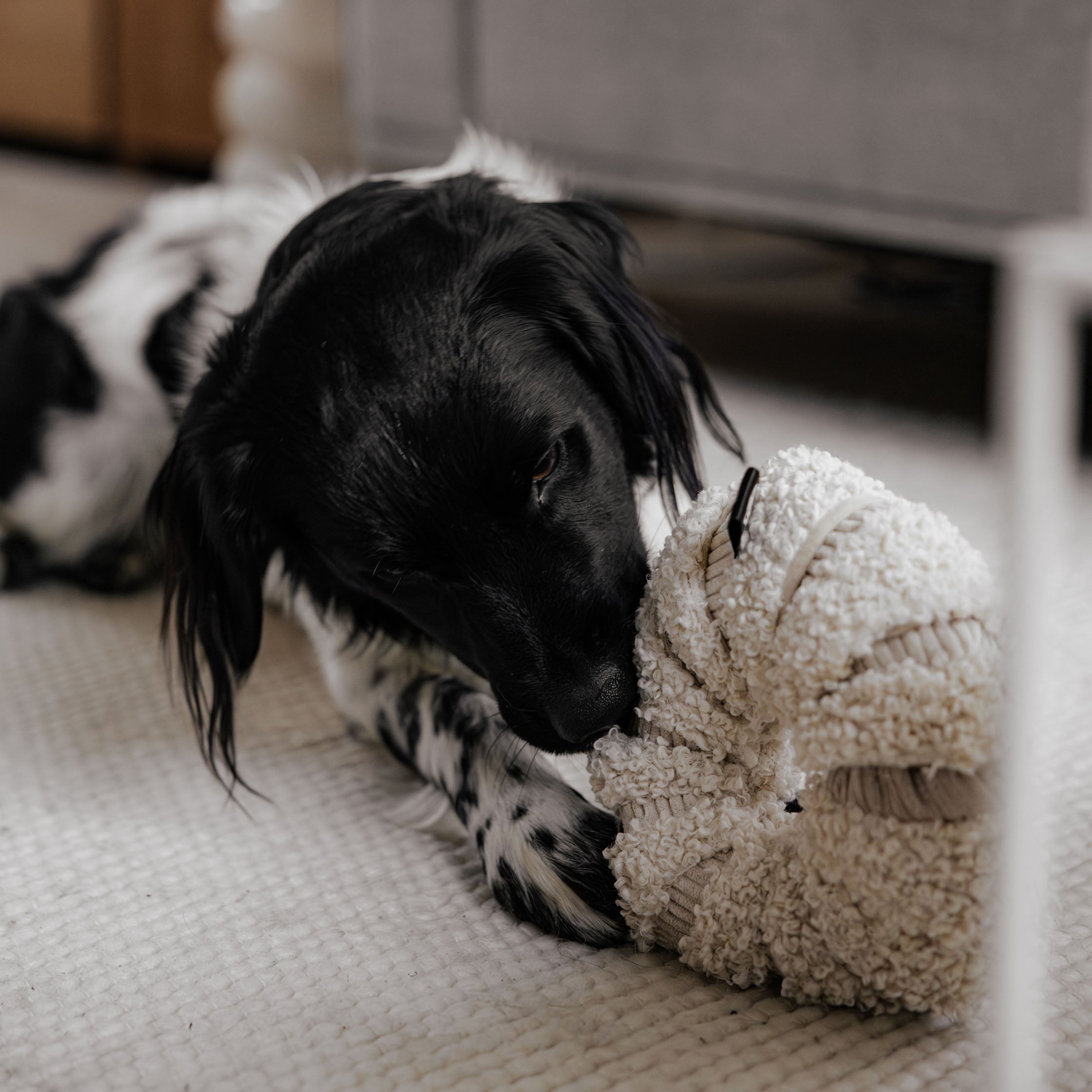 Het District 70 pluche speelgoed is gemaakt van extra zacht, langharig pluche voor maximaal knuffel- en speelplezier. Deze stof kan soms lichte pluisjes loslaten, wat een natuurlijk kenmerk is van dit materiaal. De speeltjes zijn gevuld met zachte vulling en sommige varianten bevatten een pieper. Hoewel ze met zorg zijn ontworpen, is geen enkel hondenspeeltje volledig veilig wanneer een hond het kapot bijt. Begeleid het spelen daarom altijd om ongelukken te voorkomen.