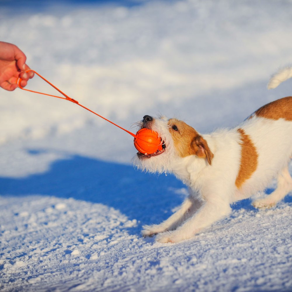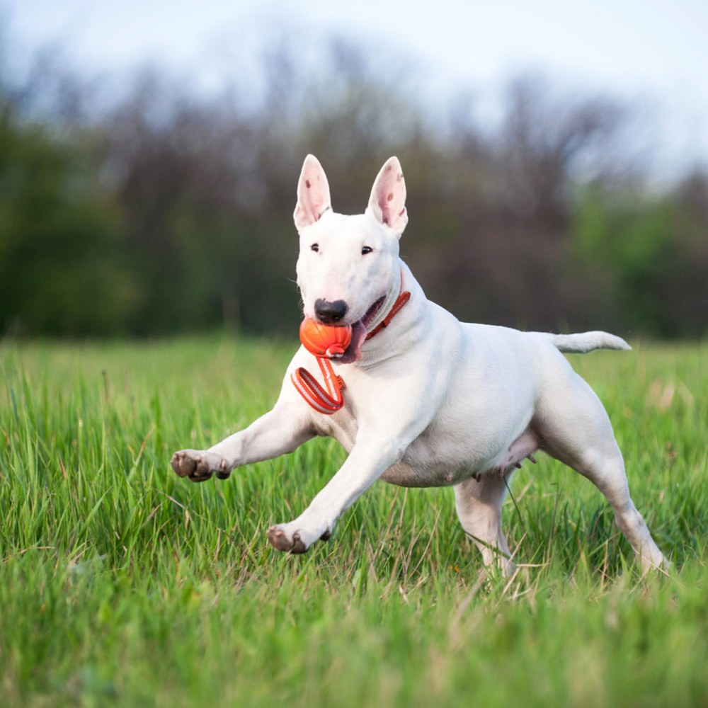De bal is vervaardigd uit zacht polymeer. Tijdens gebruik kunnen bijtsporen zichtbaar worden; deze hebben geen invloed op de structurele eigenschappen, duurzaamheid of functionaliteit van het product.