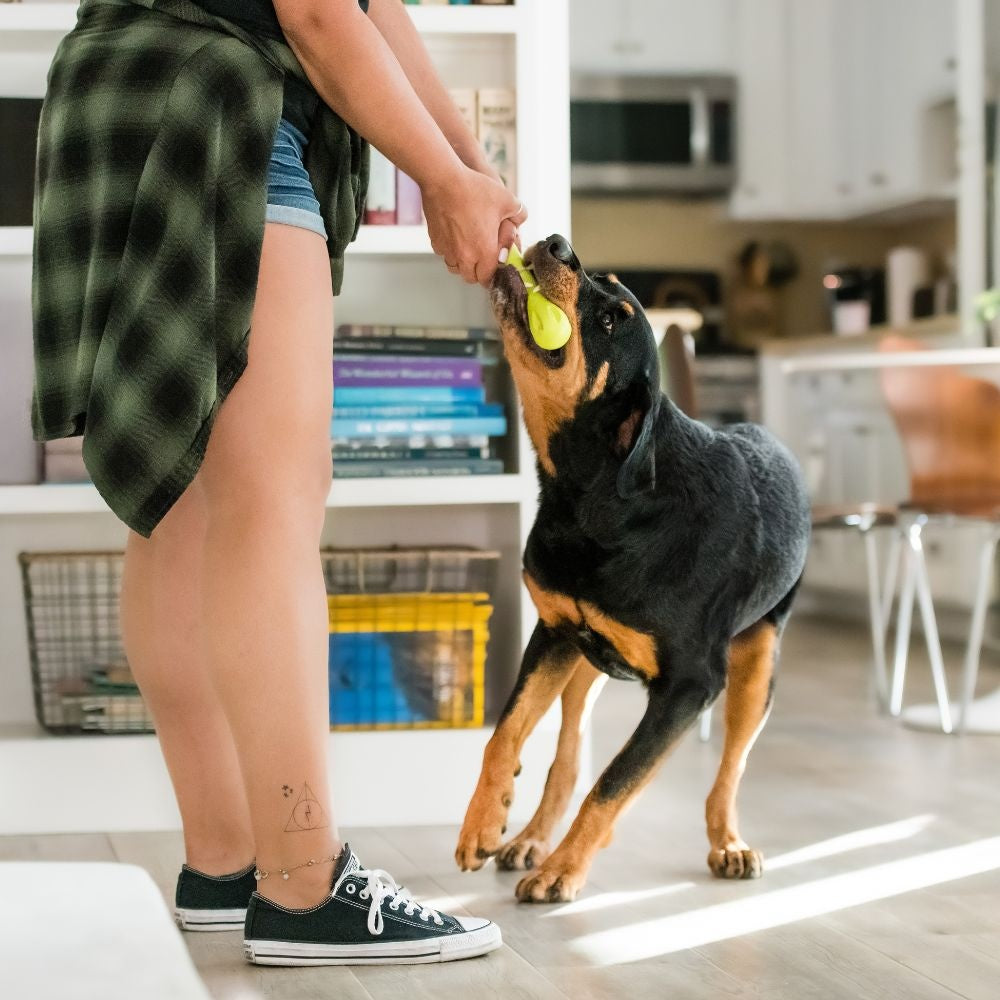 Geen enkel hondenspeelgoed is onverwoestbaar. Kies alleen speeltjes die de juiste vorm en grootte hebben voor de hond en houd altijd toezicht op het gebruik van dit speeltje door de hond. Als er schade optreedt, stop dan met het gebruik van het speeltje.
