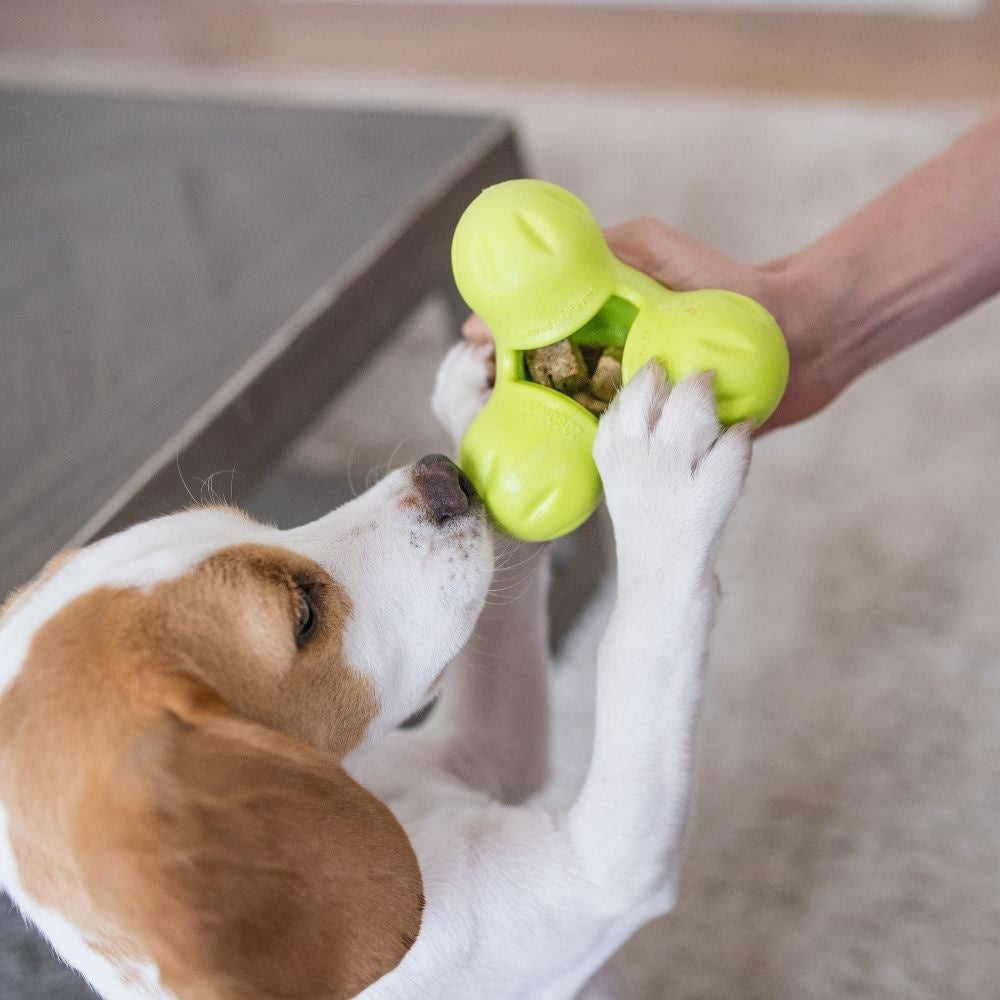De kleine Tux is geschikt voor kleine hondjes, de grote Tux voor middelgrote tot grote honden. Stop brokjes in de Tux voor beginners of verhoog de moeilijkheidsgraad en vul het speeltje met bouillon, jus of nat voedsel. Vries het speeltje in voor nog langer plezier.