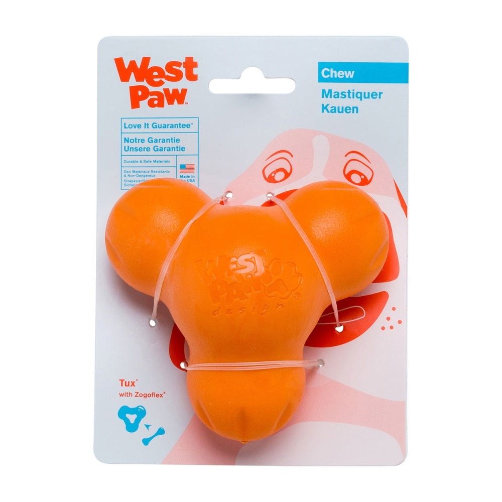 West Paw Tux blijft drijven, is veilig, recyclebaar en gemakkelijk schoon te houden, ook in de afwasmachine. Dit hondenspeelgoed is zó duurzaam en stevig dat zelfs de meest fanatieke kauwer het niet kapot krijgt.