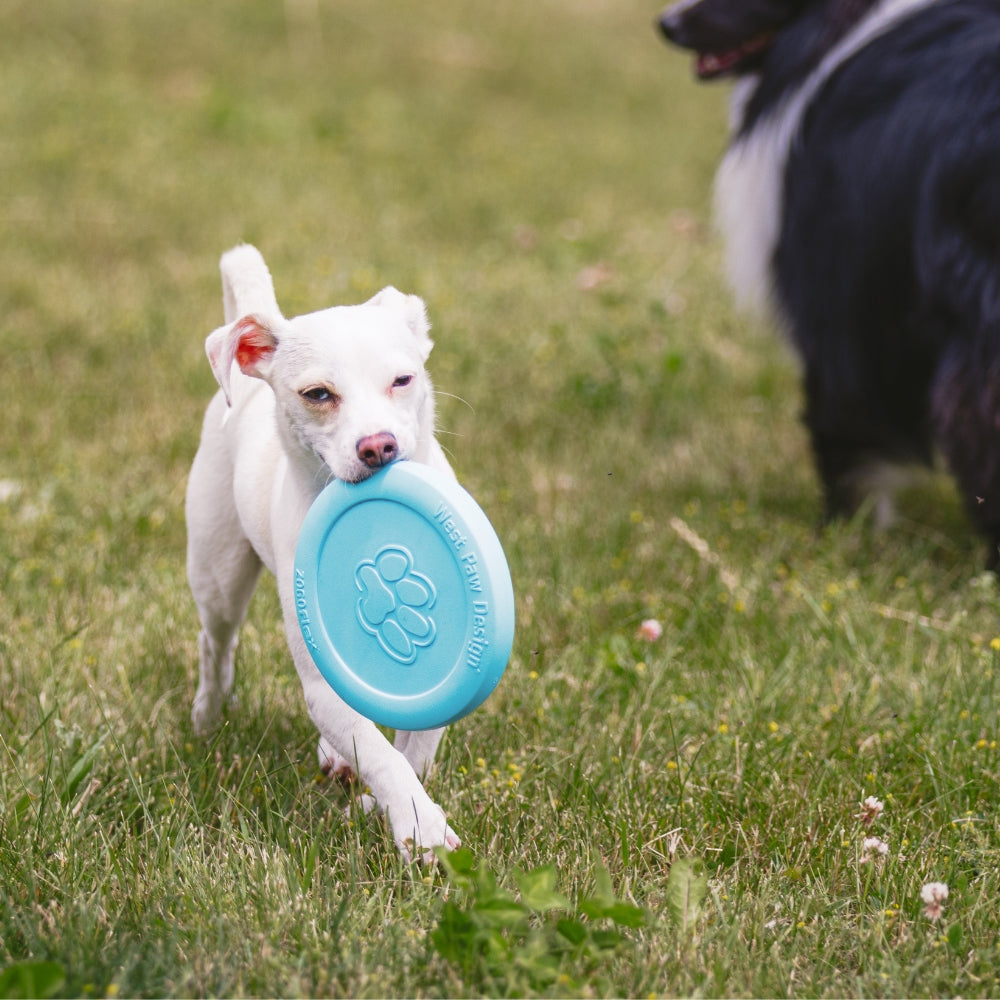 West Paw's Zogoflex Zisc is een hondenfrisbee, gemaakt van flexibel, stevig en onverslijtbaar materiaal. De frisbee maakt het voor de hond gemakkelijker om deze te vangen zonder dat het pijn doet of de bek van de hond beschadigd.