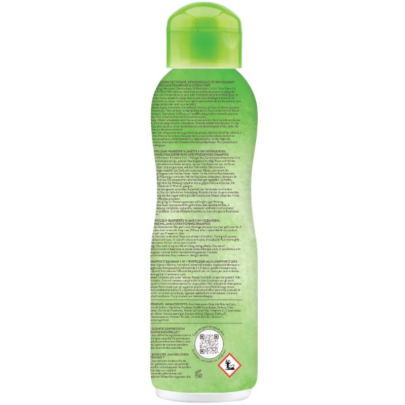 TropiCleans 3in1 Geruchsneutralisierendes Shampoo Himberre + Limette reinigt, pflegt und neutralisiert unangenehme Gerüche. Dank der innovativen 3X Längeranhaltenden Dufttechnologie, wird das Produkt mit einer magnet-ähnlichen Technologie in das Fell eingewebt und sorgt für anhaltende Frische. Glycerin bildet eine Schutzschicht, die dem Fell kontinuierlich Feuchtigkeit spendet und es gesund und sauber hält. Der frische Duft von Himbeere + Limette lässt Ihr Haustier frisch duften - bereit für die nächste Kuscheleinheit. Alle TropiClean Produkte sind tierversuchsfrei.