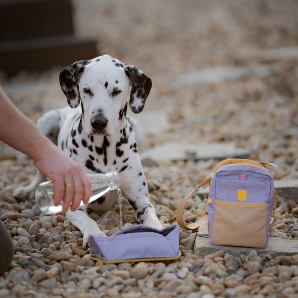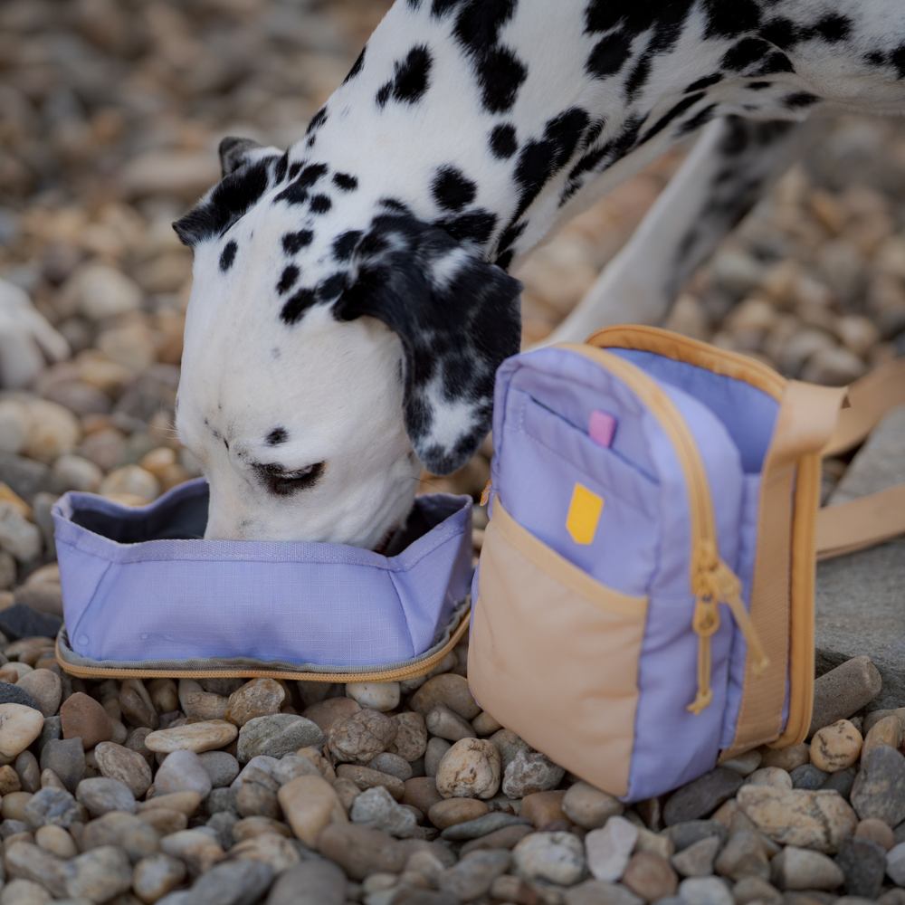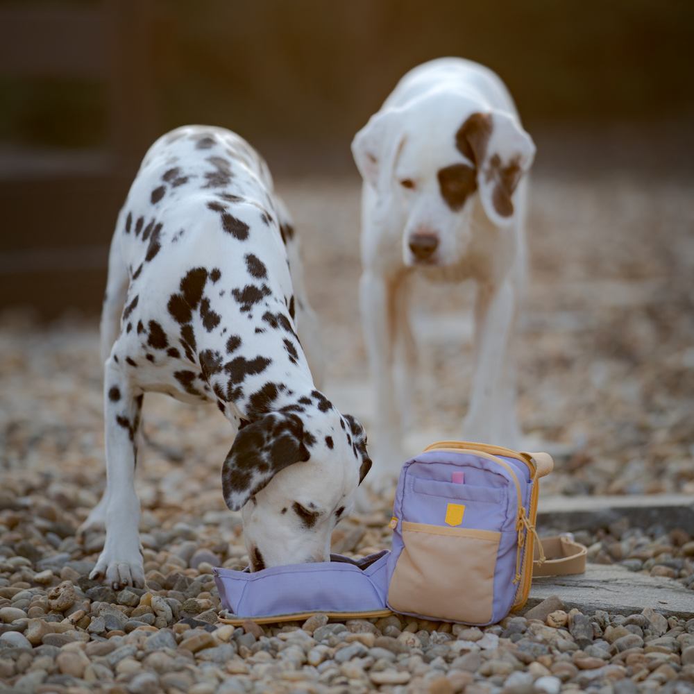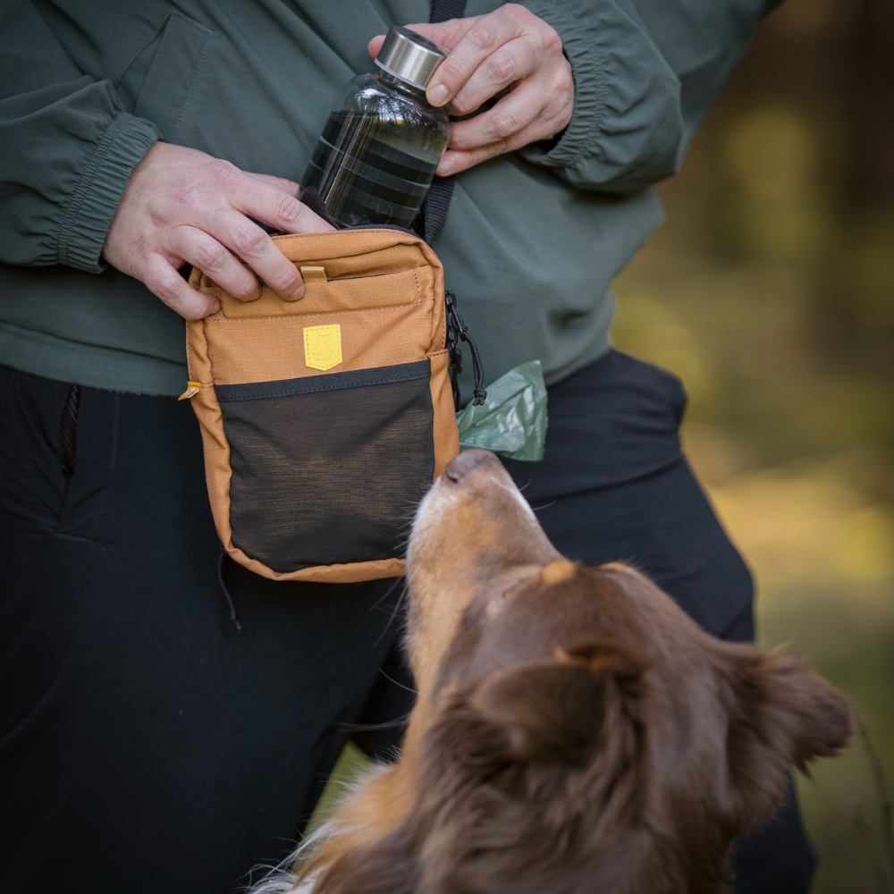 Die Tasche besteht aus 100 % recyceltem Polyester-Ripstop (RPET), hergestellt aus recycelten PET-Flaschen. Das geräumige Hauptfach mit Doppelreißverschluss bietet Platz für alles, was man täglich braucht, und verfügt über ein integriertes Fach für Kotbeutel mit diskretem Ausgang. Zwischen den beiden Fächern befindet sich eine verstellbare Halterung für Wasserflaschen verschiedener Größen. Die Rückwand ist abnehmbar und kann als Hundenapf verwendet werden – so ist die Flüssigkeitszufuhr unterwegs ganz einfach.