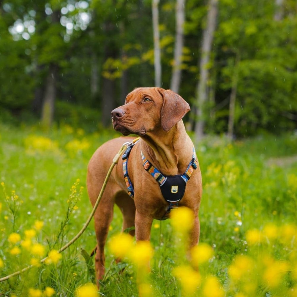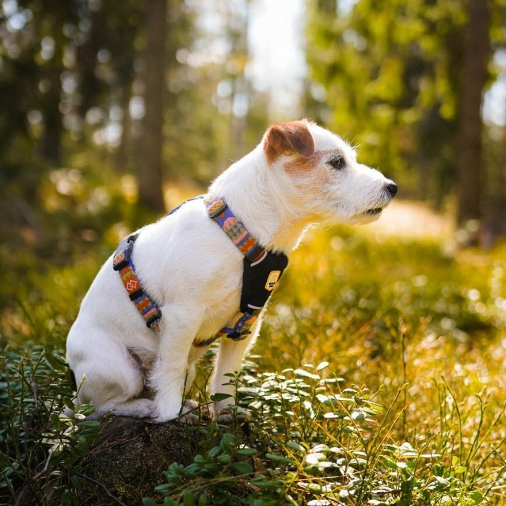 Das Hundegeschirr besteht aus 100 % recyceltem Polyester (RPET) und zeichnet sich durch eine spezielle Schlauchgewebekonstruktion aus. Diese Konstruktion sorgt für einen weichen, bequemen Sitz und ist gleichzeitig äußerst strapazierfähig. Dank des Fünf-Punkt-Verstellsystems passt das Geschirr verschiedenen Körpertypen. Zwei Schnallen erleichtern das An- und Ausziehen. Die weiche Frontpolsterung ist mit Reflektoren für bessere Sichtbarkeit im Dunkeln ausgestattet. Der nickelfreie D-Ring aus Metall ermöglicht eine sichere Befestigung der Leine.