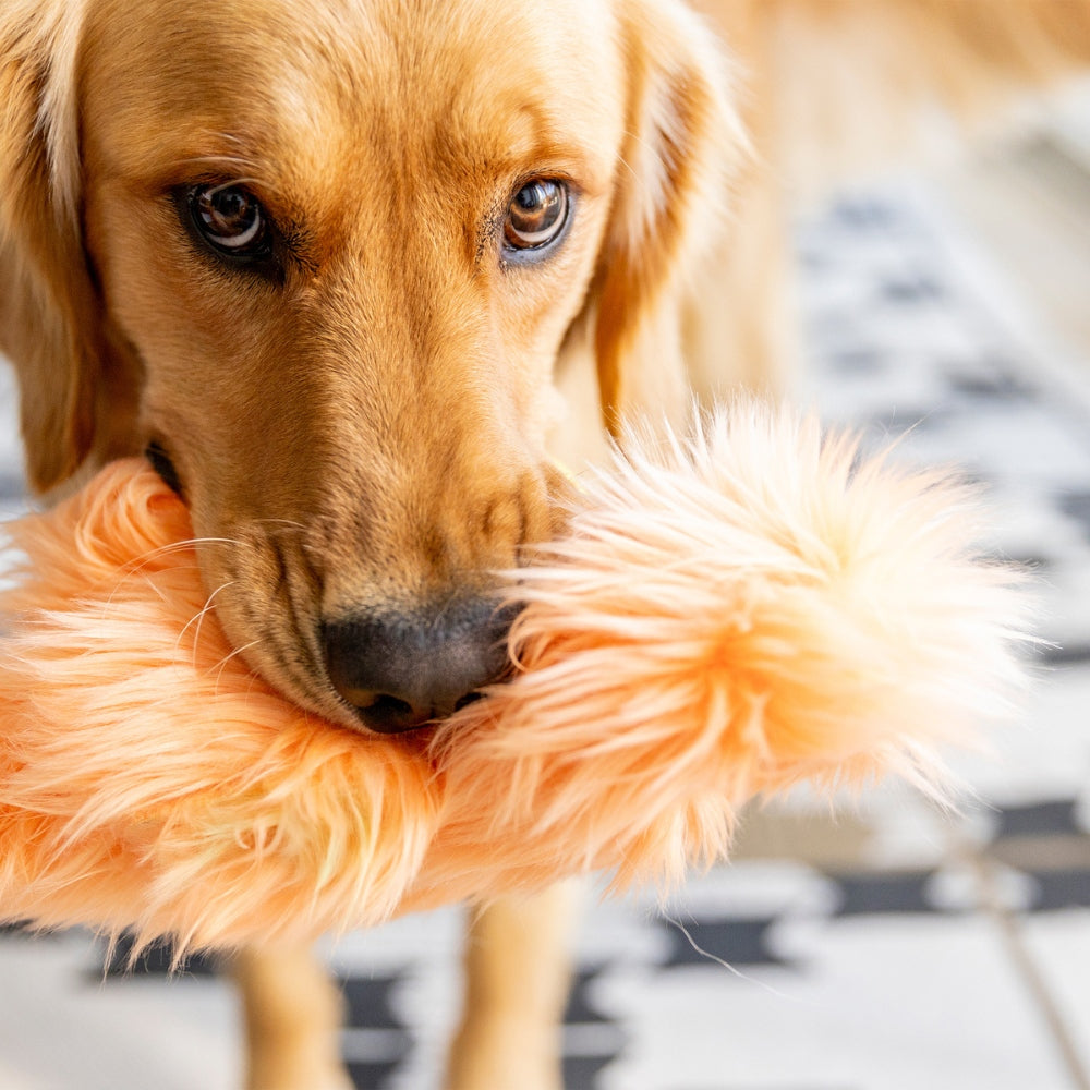 Strapazierfähiges Hundespielzeug aus Plüsch in Melonenfarbe für intensive Spielstunden. Robust und attraktiv für jeden Hund.