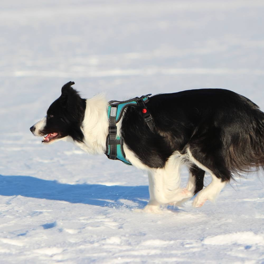 Das robuste Design hält auch den ungestümsten Hunden stand. Der breite Brustbereich sorgt dafür, dass das Geschirr auch bei intensiven Aktivitäten unter allen Bedingungen an Ort und Stelle bleibt. Ein Haltegriff auf der Rückseite sorgt für zusätzliche Kontrolle über den Hund in anspruchsvollen Situationen.