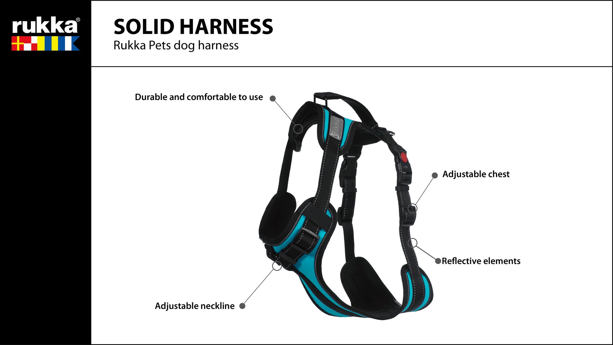 Das Rukka Solid Geschirr ist ein gepolstertes Geschirr, das leicht anzulegen und angenehm zu tragen ist. Das Geschirr ist im Nacken- und Brustbereich verstellbar, was für eine gute Passform sorgt. Dank der beiden Schnellverschlüsse lässt sich das Geschirr schnell und einfach anlegen.