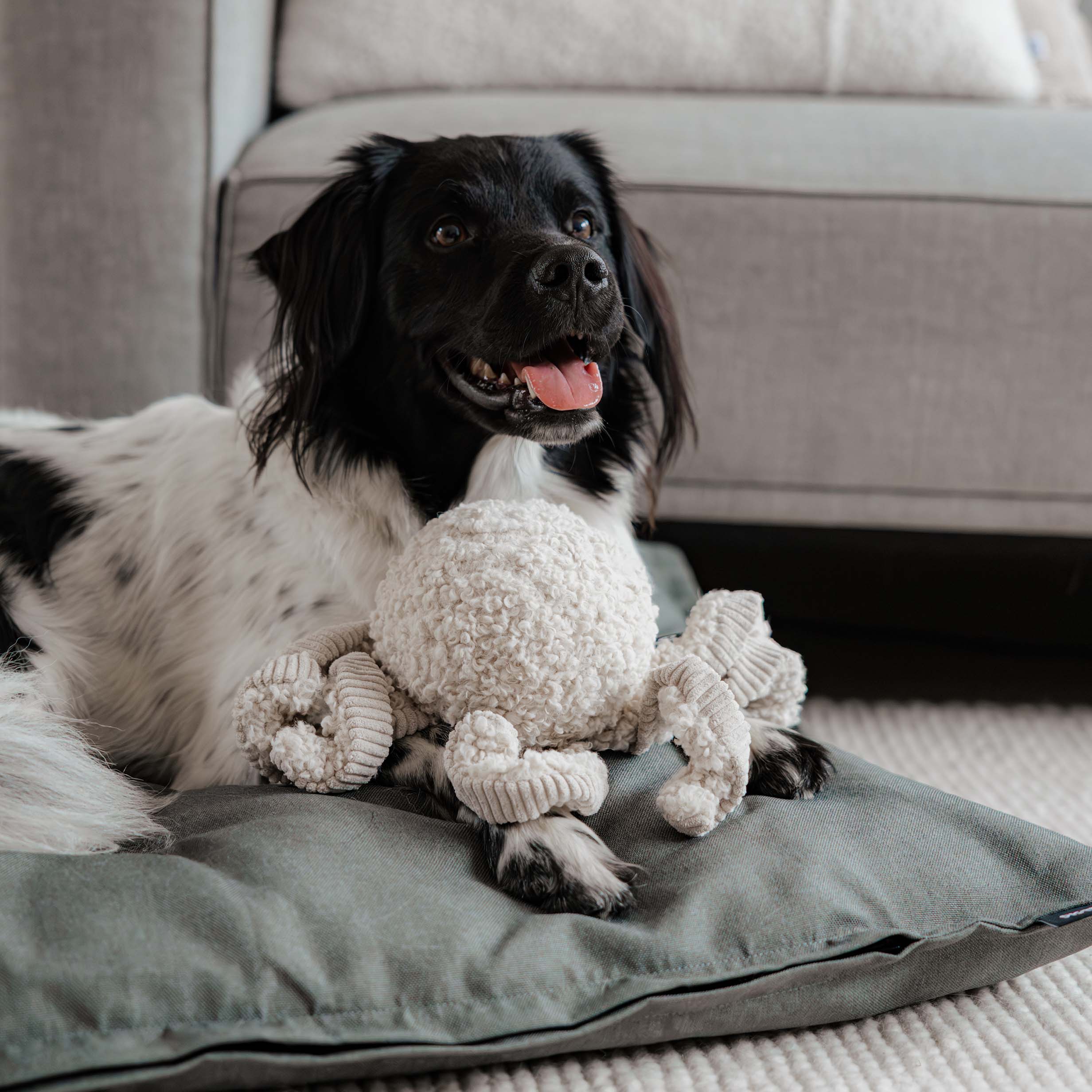 Das Hundespielzeug SQUID ist für Hunde jeden Alters und jeder Größe geeignet. Dank seines robusten und dennoch weichen Designs eignet es sich ideal zum Apportieren, Kauen oder Kuscheln. Erhältlich in drei stilvollen Farben, passt es perfekt in jedes Interieur.
