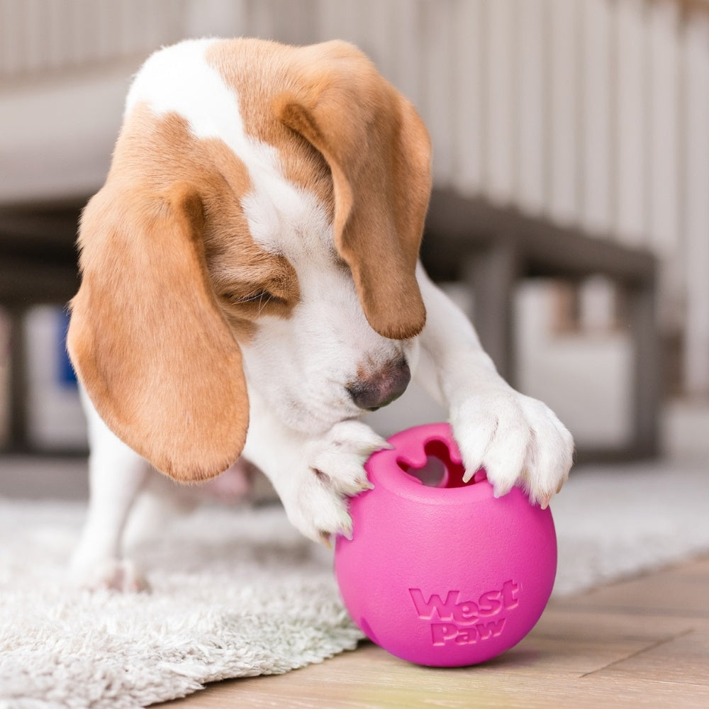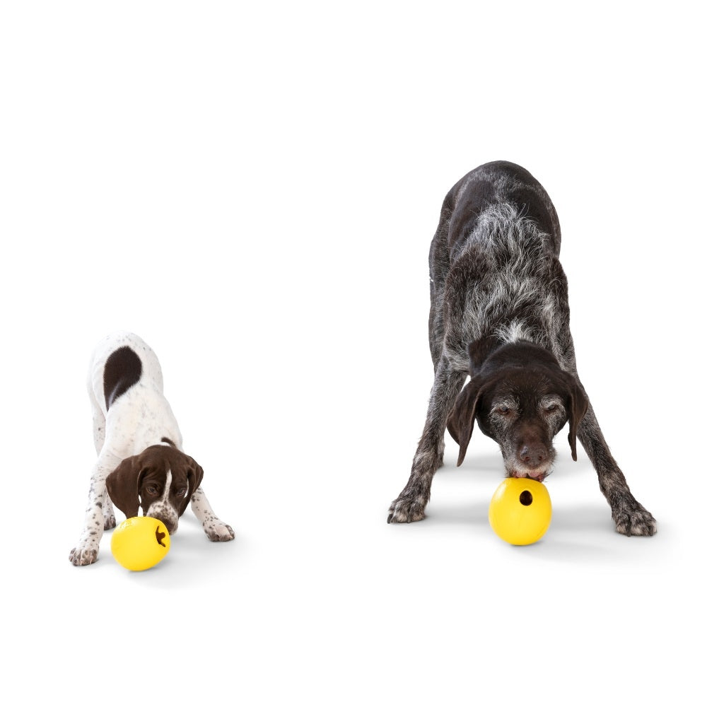Dank der einzigartigen „Fischfallen“-Öffnung lässt sich der Rumbl problemlos mit Trockenfutter oder Snacks befüllen, ohne dass diese herausfallen. Größe Small ist für Hunde bis 18 kg geeignet, Größe Large für größere Hunde ab 18 kg.